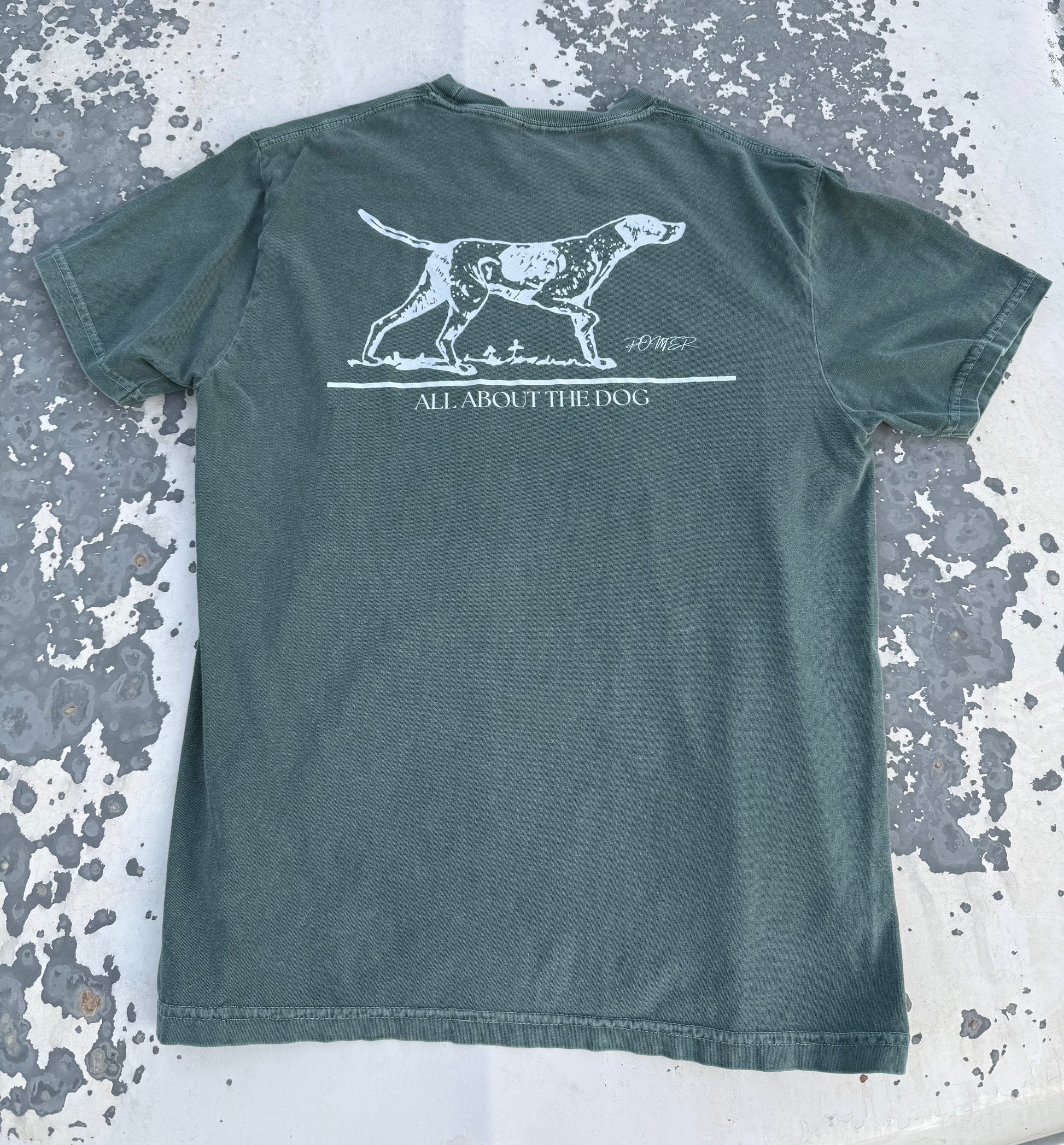This rugged, field-ready tee features a hand-drawn pointer design printed on a deep forest green background. Built for comfort and durability, it’s made to hold up from the early morning field to the campfire at night.
