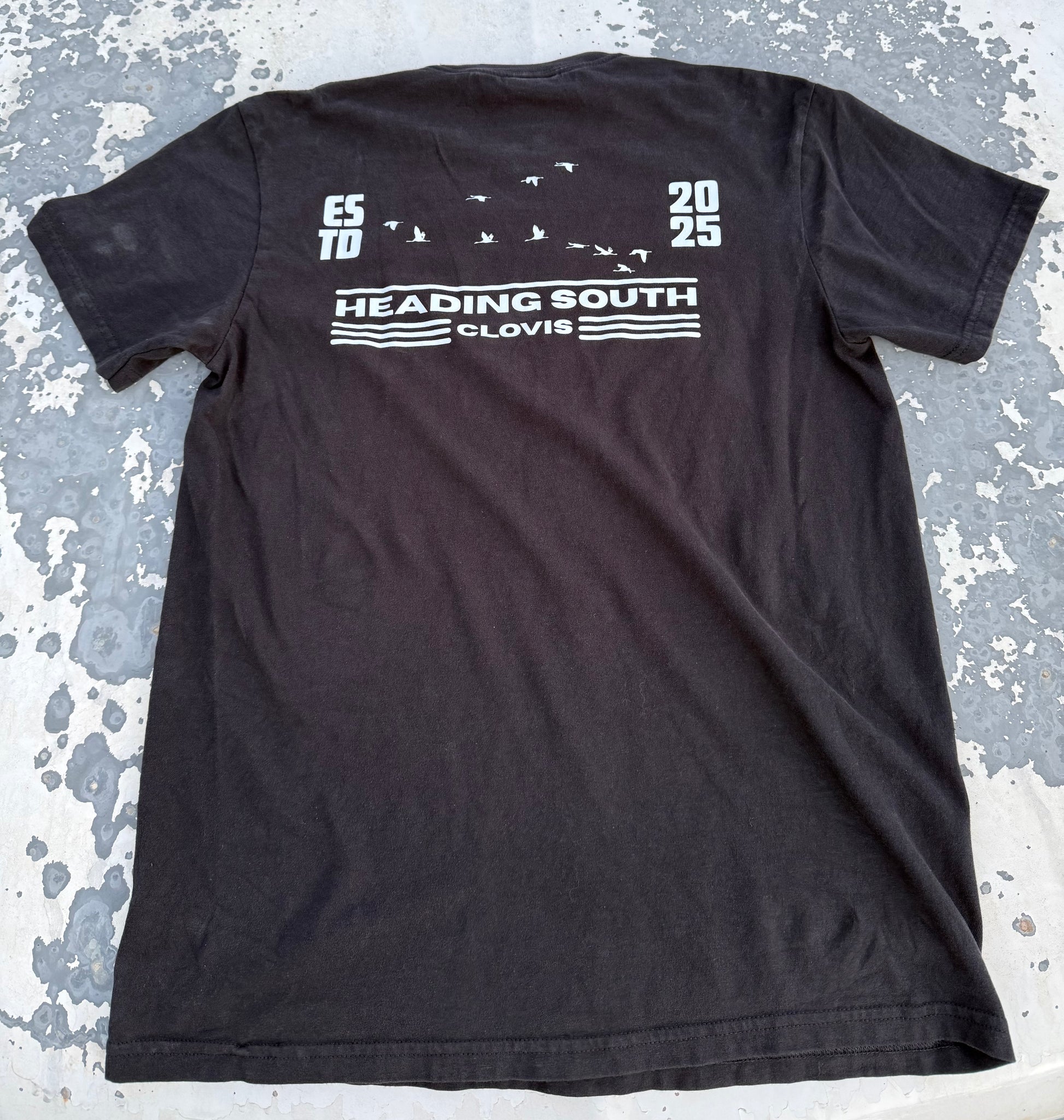 The Heading South Tee captures that rugged Clovis spirit — a nod to long drives, cool mornings, and wide horizons. Featuring a vintage-style southern bird graphic and bold typography, this shirt brings comfort and heritage together in a timeless western look.